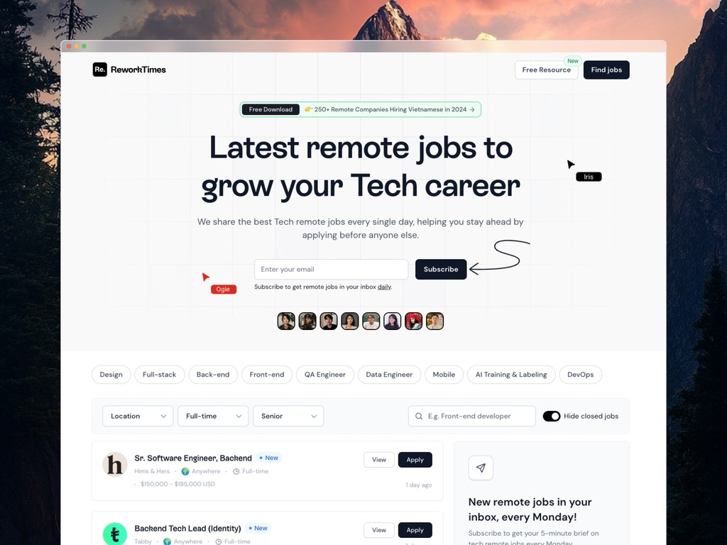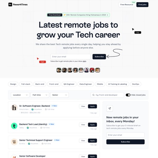 Designed and launched in just one month, this job board provide the latest remote opportunities for tech professionals across the APAC region. It now attracts 6,000+ monthly visitors from around the world.