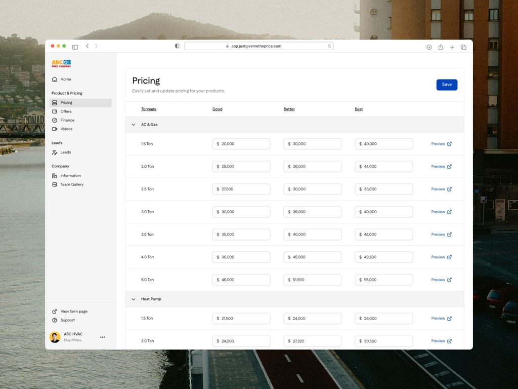 Partnering with Daniel to build a modern lead generation platform for the HVAC industry, combining a high-converting lead-gen service with a client portal to manage and track leads effectively.