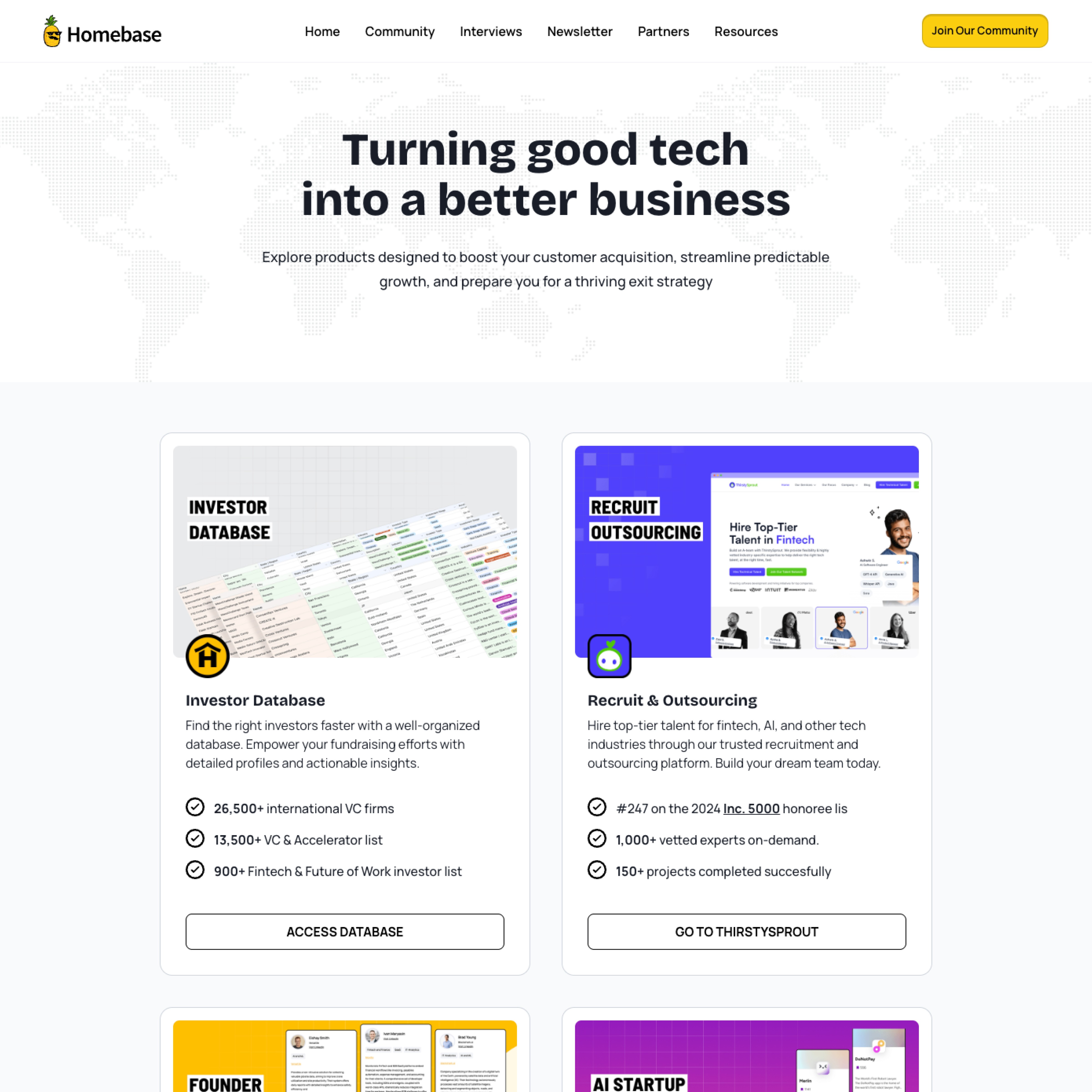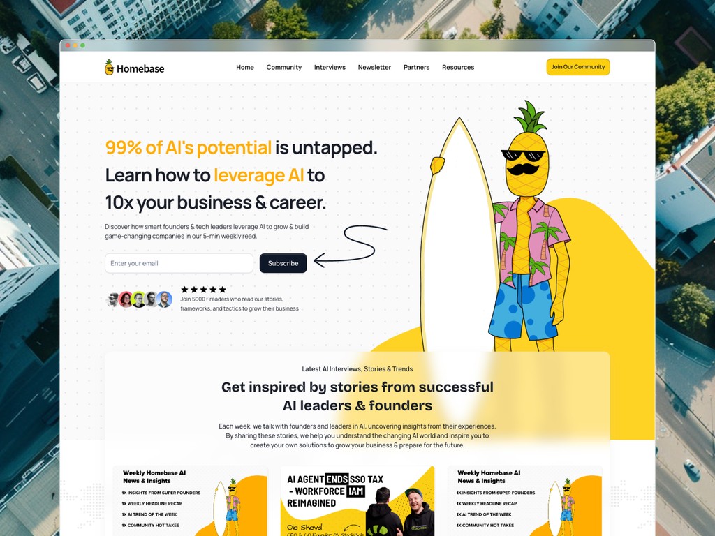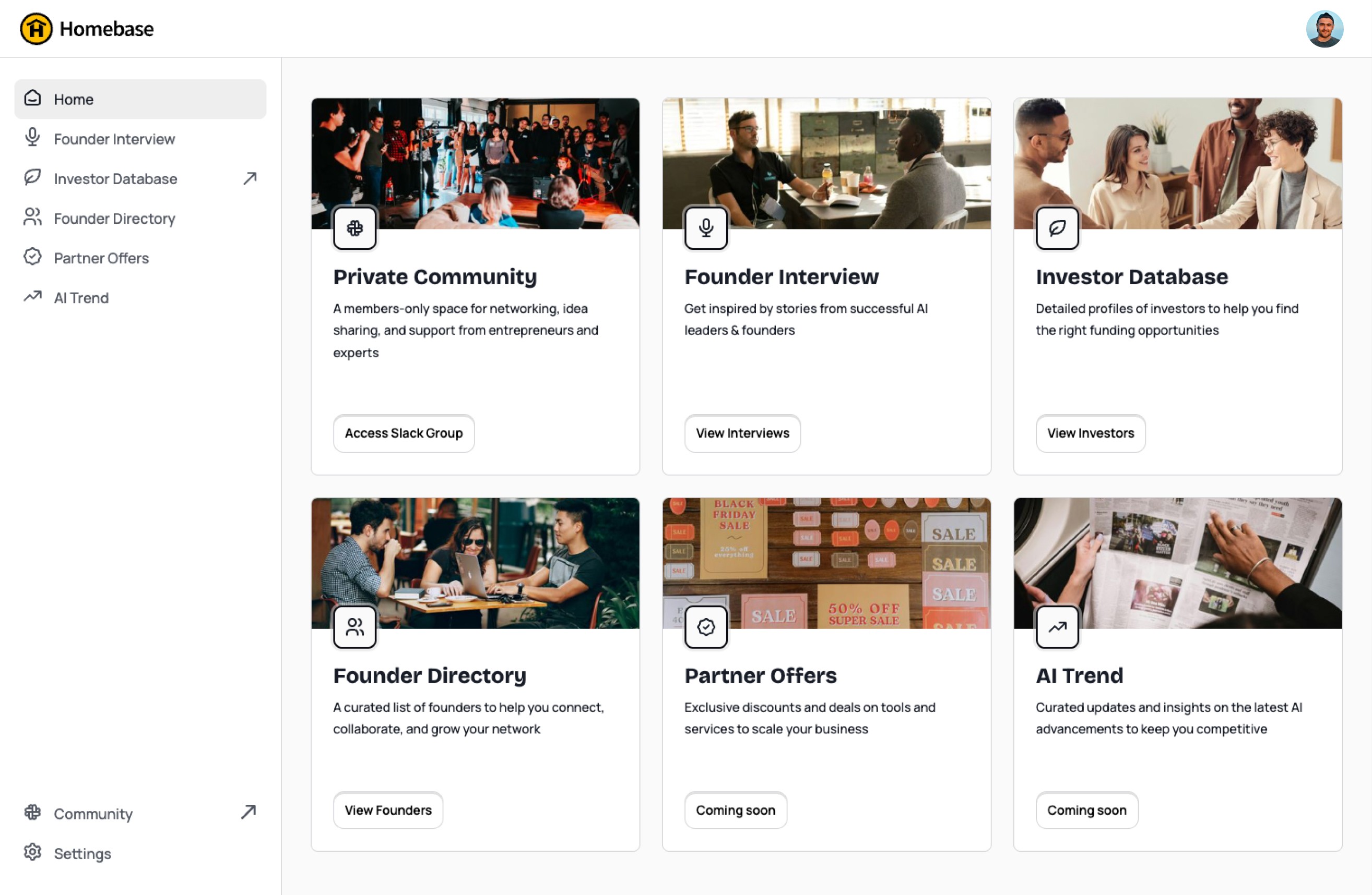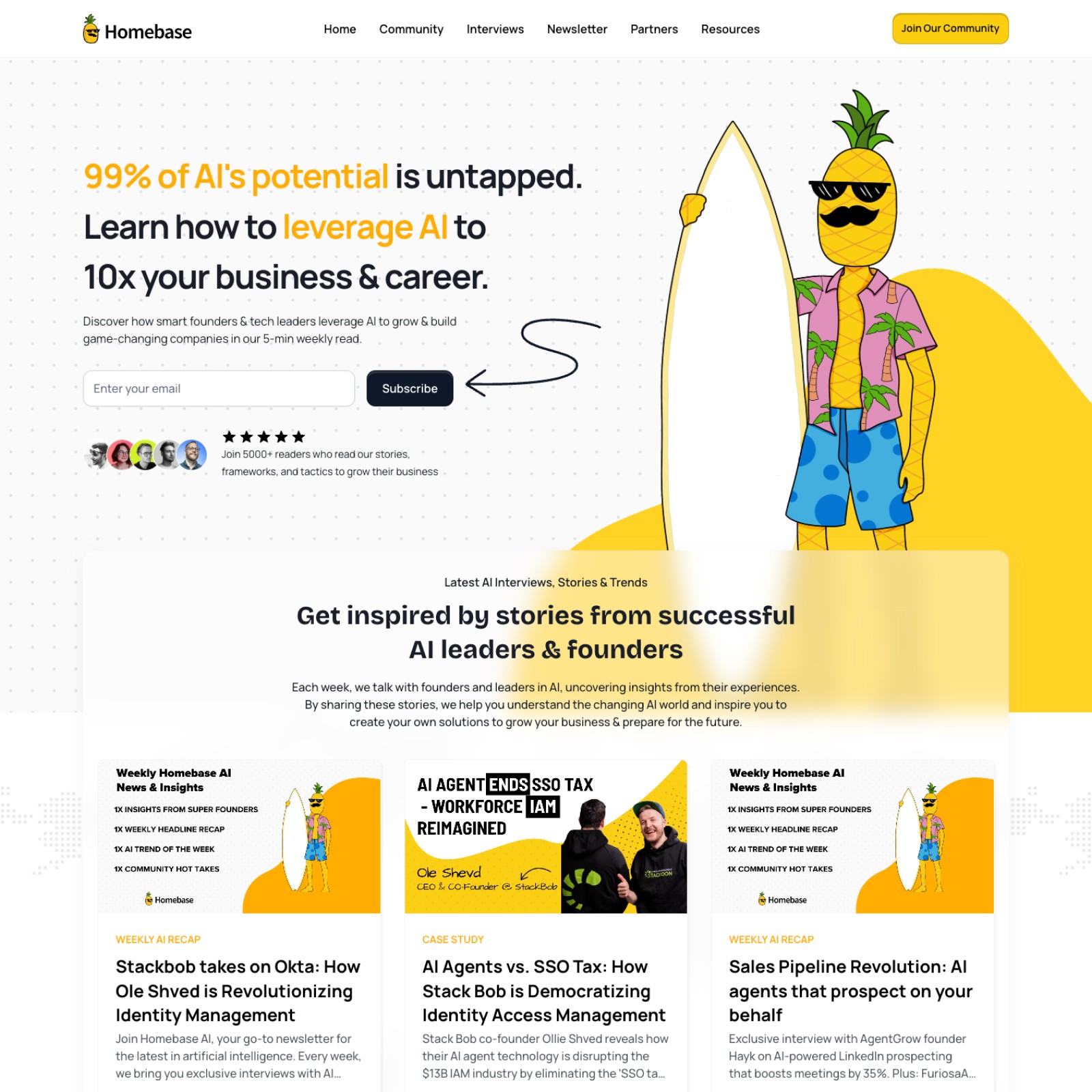 TheHomebase is a unique AI product, started with a landing page and quickly expanded into more services. I helped build the foundation and scale it, currently we have community, events, a job board, an AI company directory and newsletter.